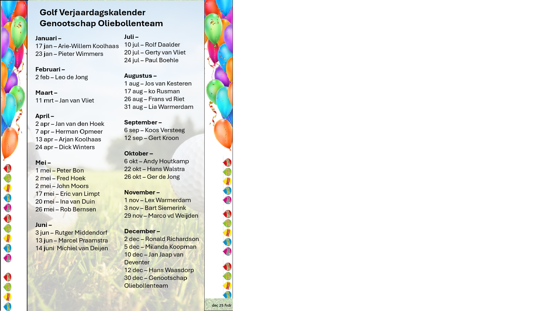Informatie Oliebollengolf vrijdag 14 maart 2025.